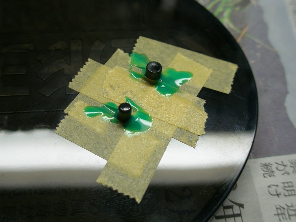 先ずは台座を作業スタンド代わりにするのでマスキングします。