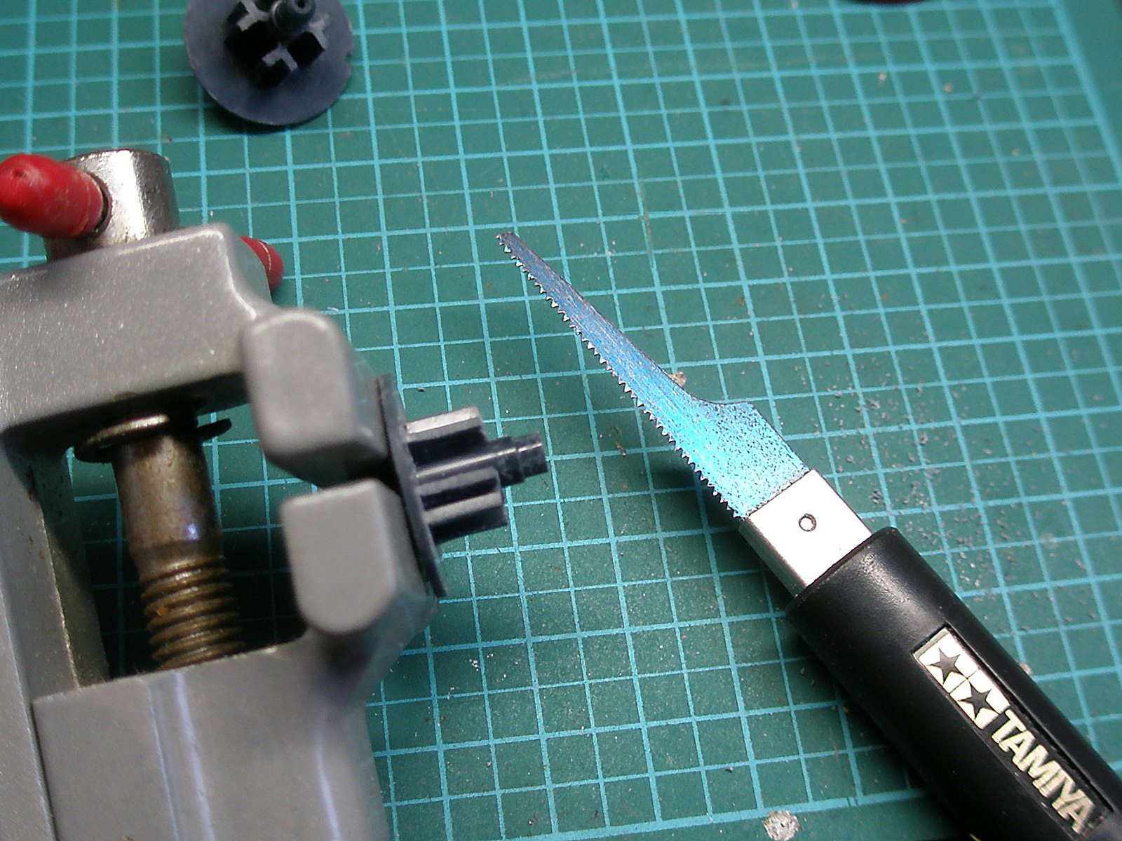 エグると溶きパテでの処理が必要です。溶きパテは硬化してもスチロール樹脂より柔らかいので他の大切な部分より削りやすいんです。